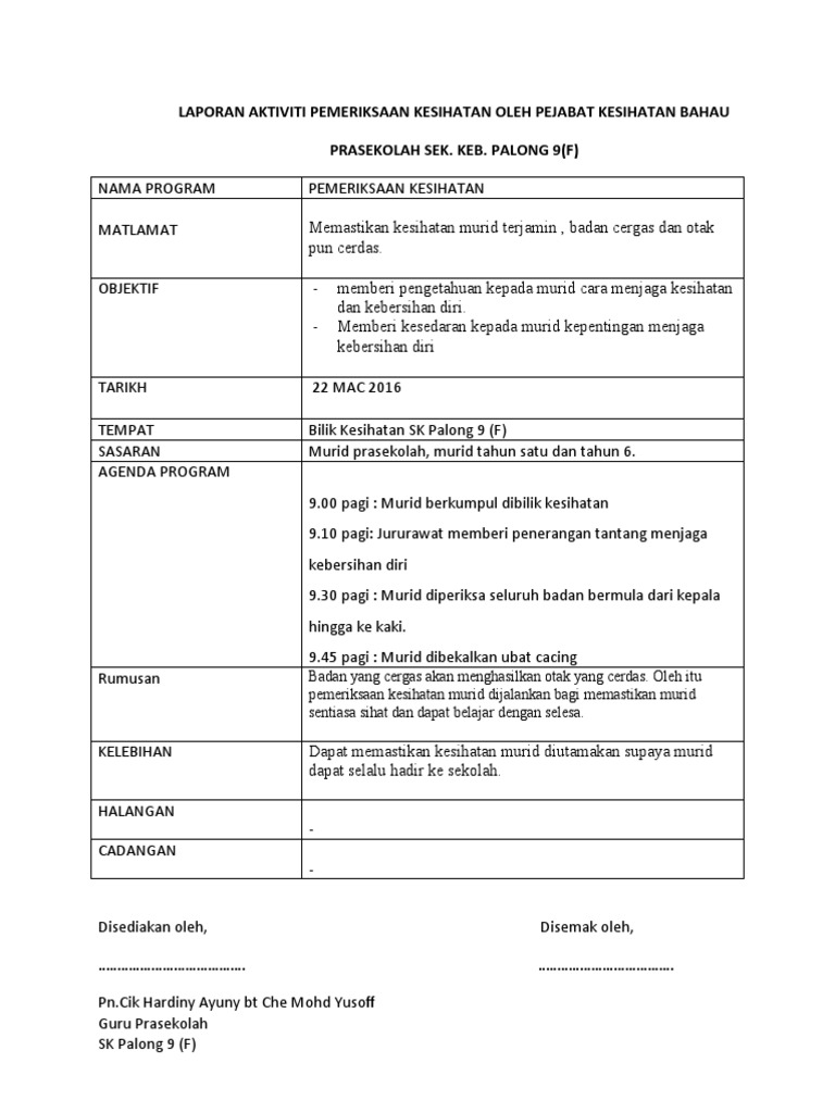 Laporan Aktiviti Pemeriksaan Kesihatan Pdf