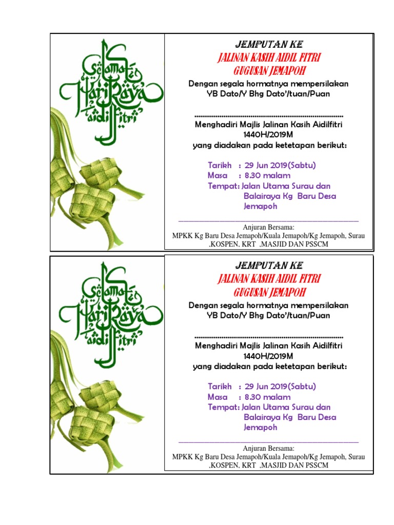 The commemoration honors both the signing of the Constitution on Sept. Contoh surat jemputan pembaca doa- contoh surat jemputan pembaca doa semoga ibu kota pindah ke- setiap jemputan yang melibatkan kenamaan- ketibaan tetamu. Kad Jemputan Jamuan Hari Raya wl1p1ydkgvlj.